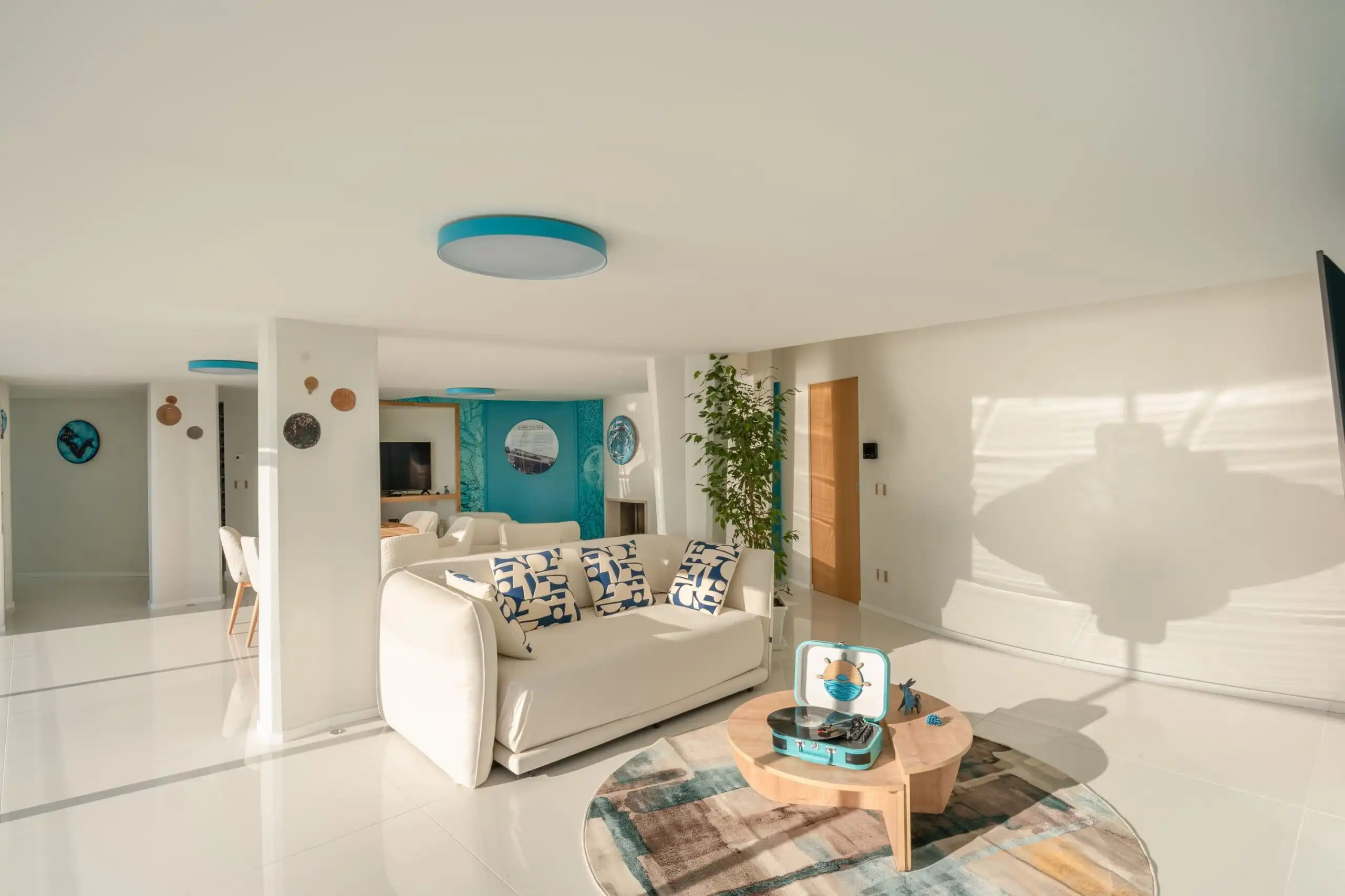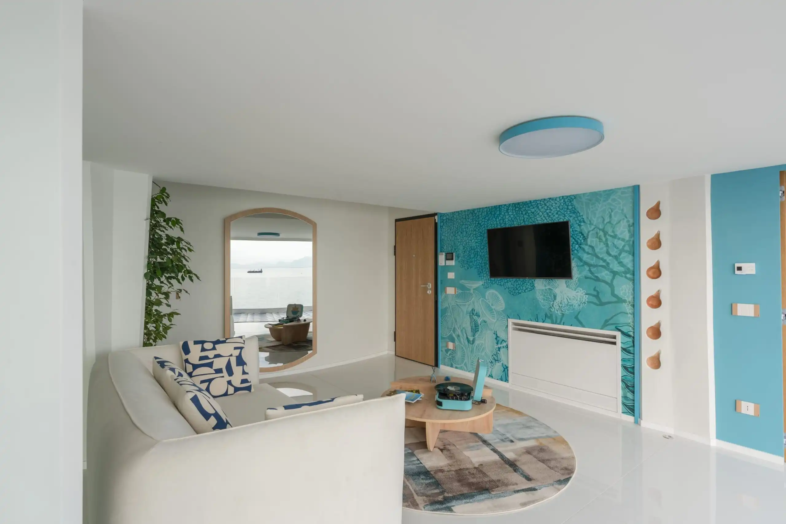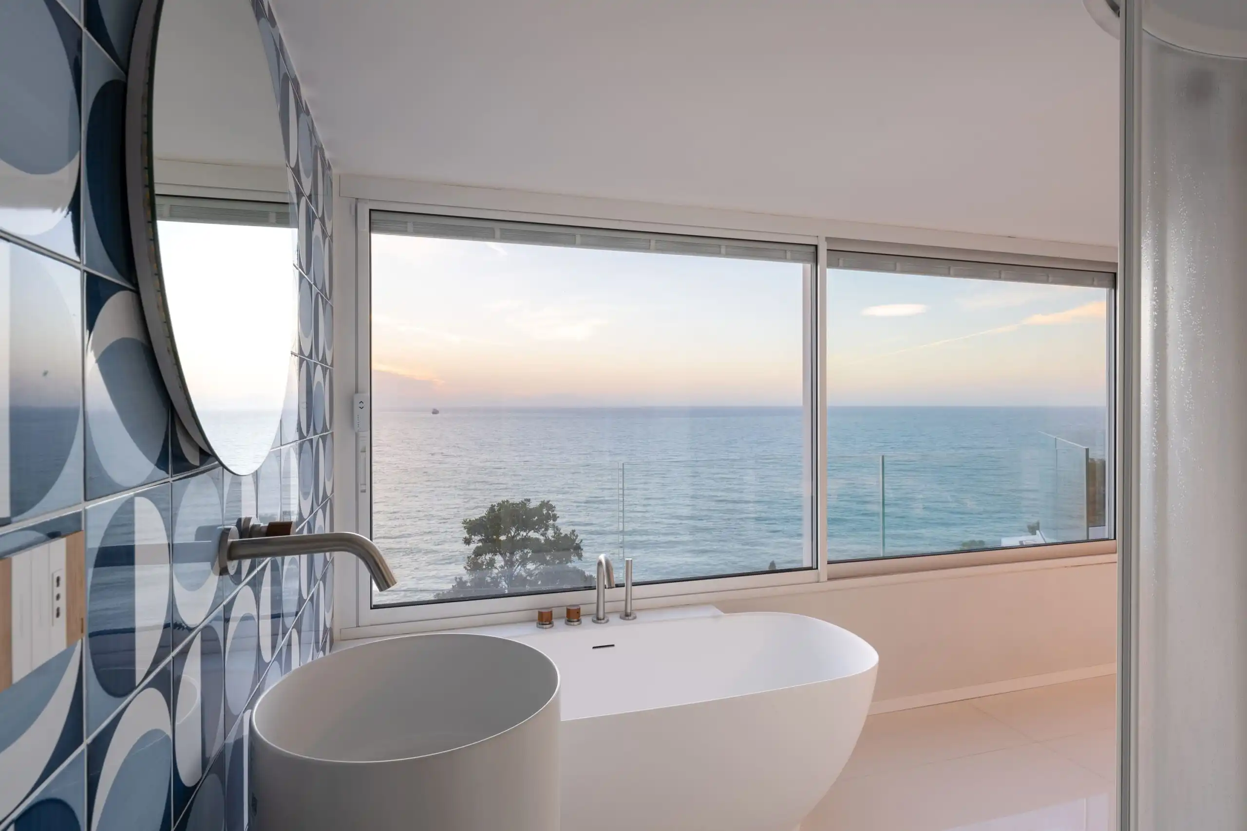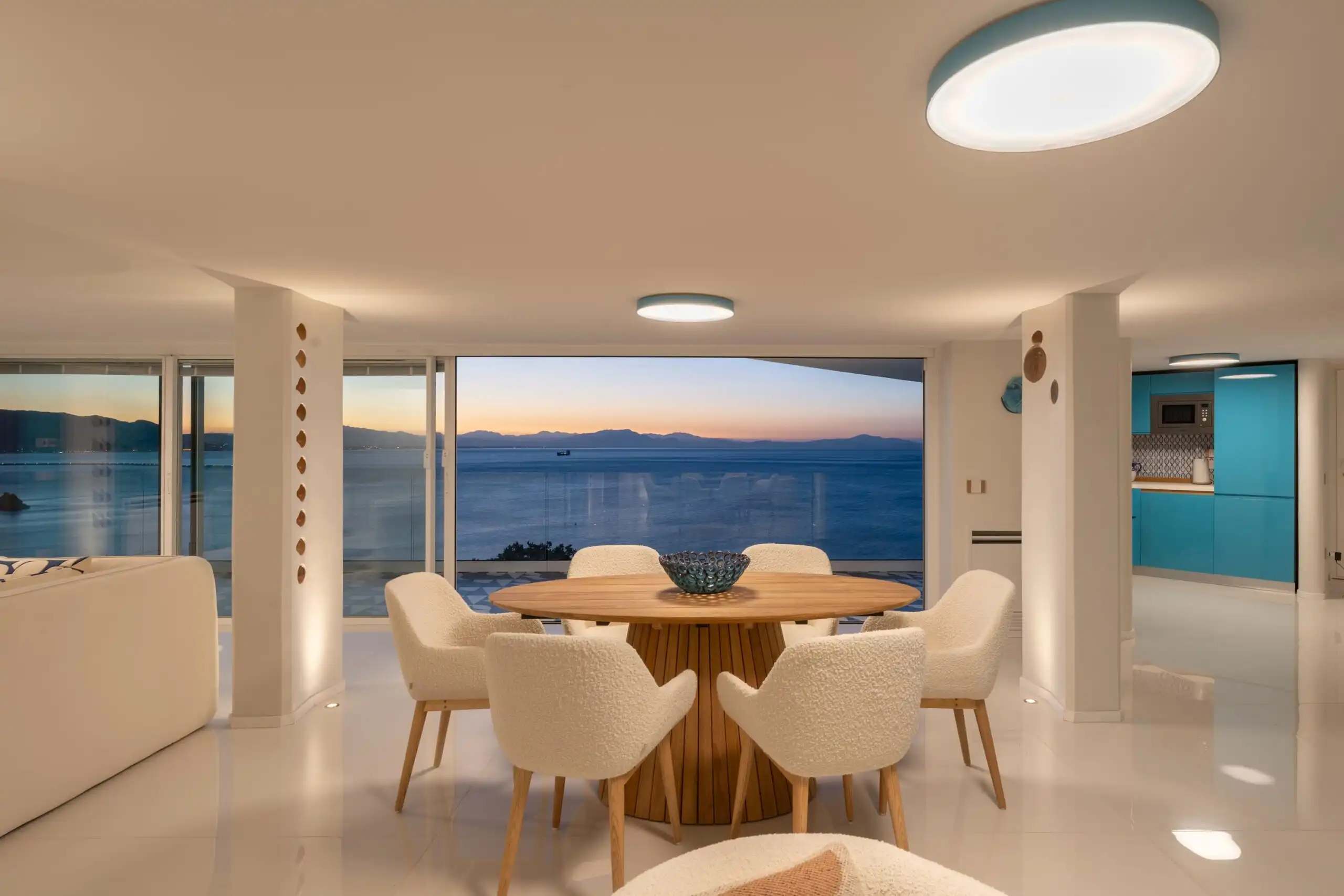 La facciata vetrata continua aperta sull’orizzonte marino rende l’interno dell’immobile esclusivo in quanto consente di vedere senza alcuna interruzione l’immensità del mare (sea wall) da ogni angolo della casa.